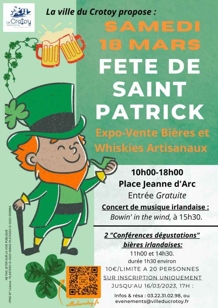 Amateurs de bières et de whiskies artisanaux, de l’ambiance irlandaise et d’un moment de détente : direction ce samedi 18 mars 2023, 101h-18h, non plus place Jeanne d’Arc comme initialement prévu mais salle Colette (Rue Jules Verne, derrière la Poste) pour la fête de la Saint-Patrick.