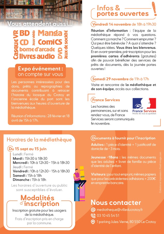 Un flyer spécial Noël est à paraître prochainement, d’ici là donc : focus sur l’ouverture de la médiathèque du Crotoy et Saint-Firmin.
