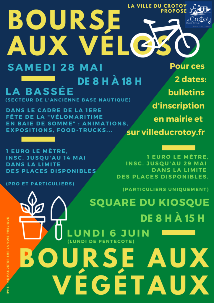 A l’occasion de la première édition de la fête de la Vélormatime en baie de Somme, la ville du Crotoy propose une bourse au vélos samedi 28 mai, 8h-18h, sur le terrain mitoyen à l’ancienne base nautique de la Bassée.